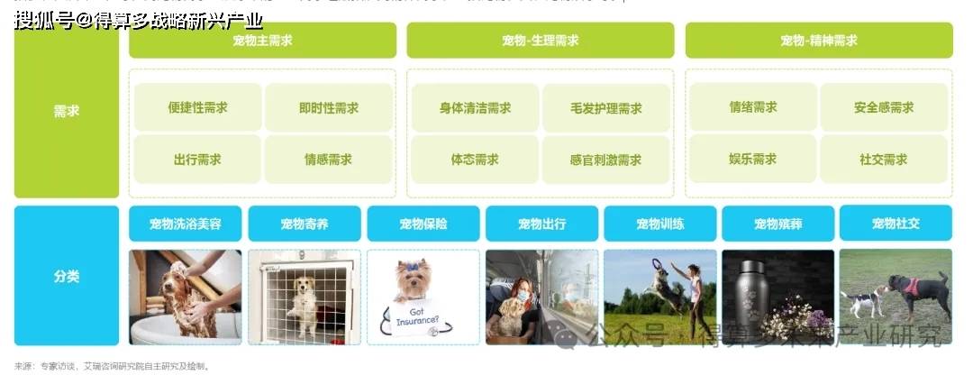 寵物服務賽道相較食品、用品及醫(yī)療而言,市場規(guī)模相對仍較小。傳統(tǒng)的寵物服務包括寵物洗浴、寵物寄養(yǎng)等,而隨著寵物主養(yǎng)寵觀念及養(yǎng)寵習慣的改變,寵物服務賽道也開始演化出新的服務類型,例如寵物殯葬、寵物出行等。在服務類型豐富化的核心,在于寵物及寵物主的需求被逐漸滿足。寵物主對于寵物服務的需求主要包括便捷性及即時性等,而寵物需求也從原來的生理需求逐漸拓展到精神需求,包括寵物社交、寵物娛樂等。