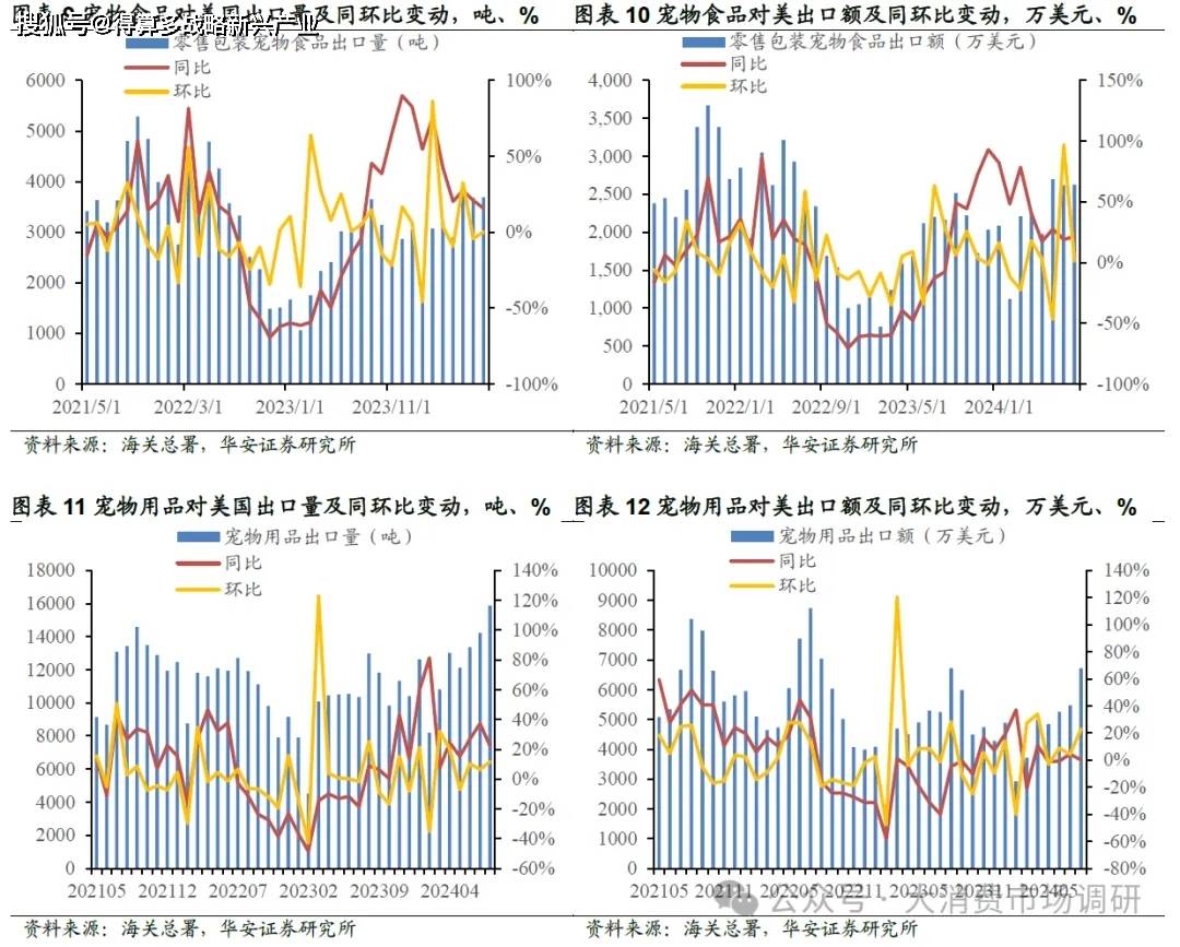 我們認(rèn)為,寵物產(chǎn)品海外出口業(yè)務(wù)持續(xù)回暖主要系,客戶庫存需求恢復(fù)疊加23年同期出口低基數(shù)影響,2024年8月部分寵物產(chǎn)品出口同比快速增長或與海外客戶因考慮船運(yùn)、自身庫存等原因提前開啟節(jié)日備貨以及人民幣匯率預(yù)期持續(xù)改善等因素有關(guān),剛需性產(chǎn)品增長情況相對(duì)較好。海外寵物市場高景氣度有望持續(xù)帶動(dòng)國內(nèi)寵物產(chǎn)品出口業(yè)務(wù)穩(wěn)健增長,建議關(guān)注相關(guān)寵物食品、用品出口企業(yè)業(yè)績彈性。