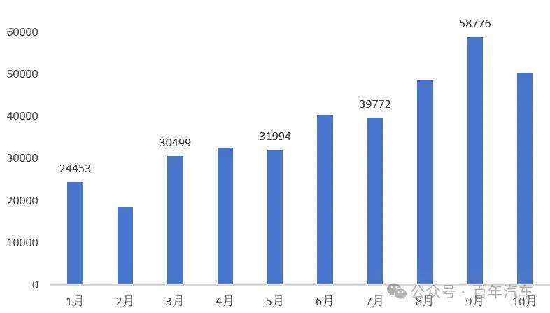 1、1-10月新能源汽車銷量走勢(交強險數(shù)據(jù))