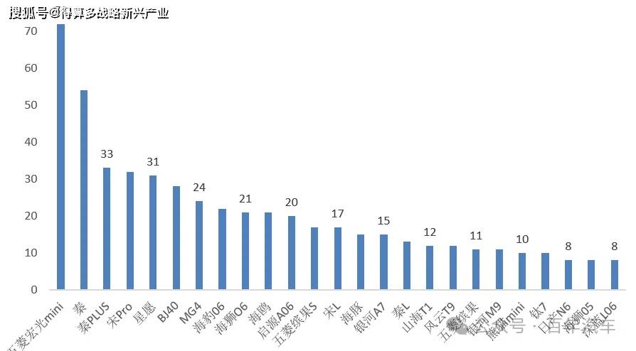3、12月份新能源汽車銷量——車型結(jié)構(gòu)(排名前20車型)