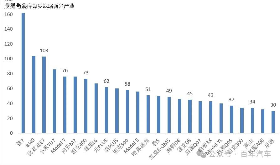 3、12月份新能源汽車銷量——車型結(jié)構(gòu)(排名前20車型)