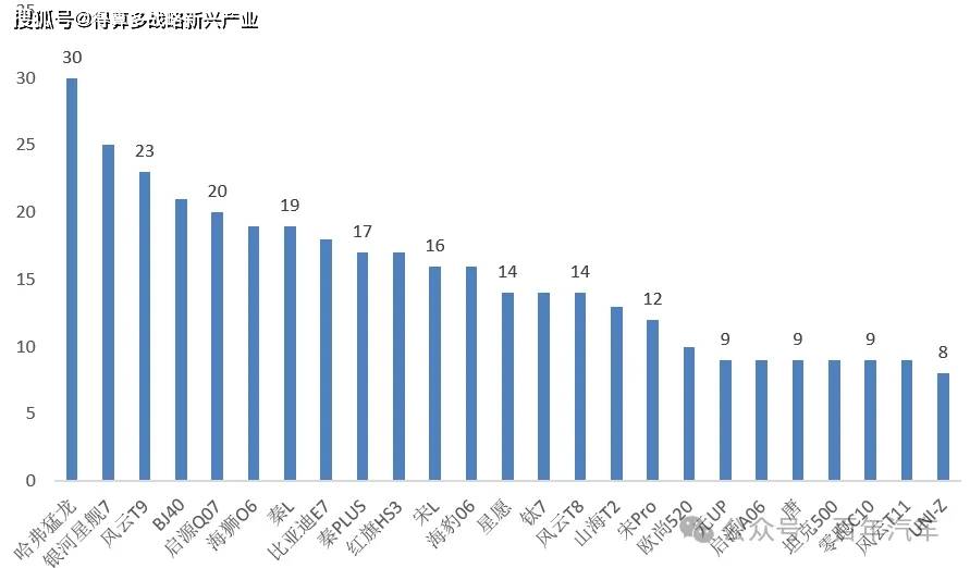 3、12月份新能源汽車銷量——車型結(jié)構(gòu)(排名前20車型)