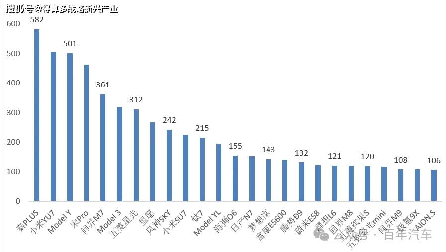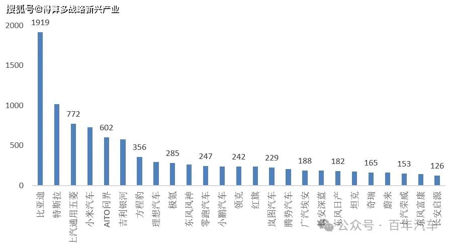 3、12月份新能源汽車銷量——車型結(jié)構(gòu)(排名前20車型)