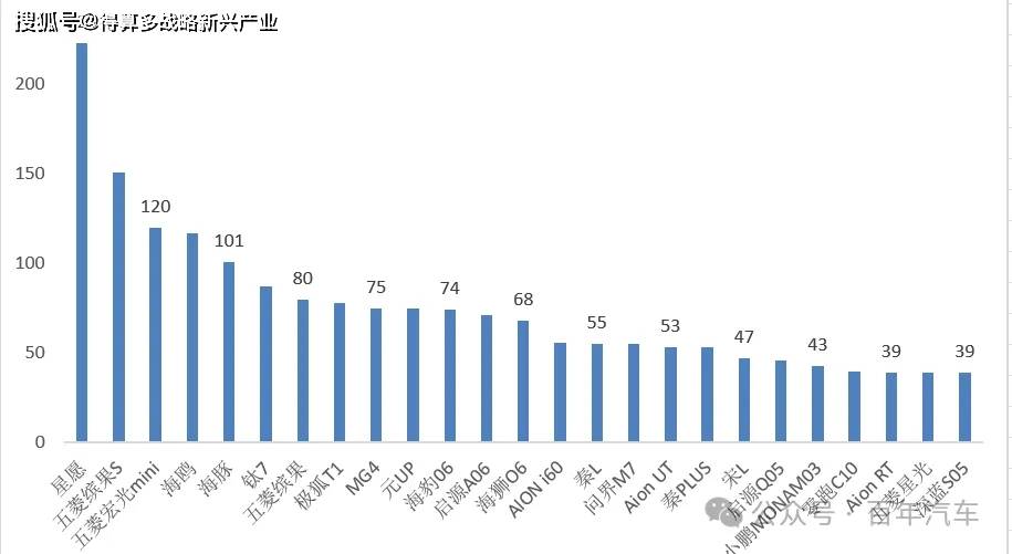 3、12月份新能源汽車銷量——車型結(jié)構(gòu)(排名前20車型)